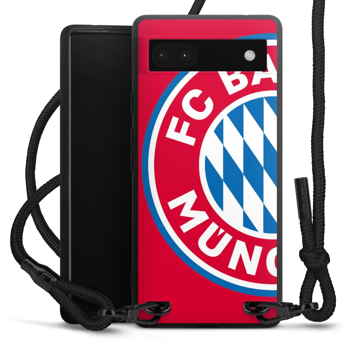 The matt black silicone case is made of flexible TPU (thermoplastic polyurethane) and offers robust protection. The durable, unbreakable material makes the cover flexible and dimensionally stable at the same time. The matte surface makes your design stand out more and is less susceptible to fingerprints and dirt. The stylish trend accessory fits comfortably in the hand and is perfectly complemented by the fabric (polyester) mobile phone strap. The braided fabric strap is approx. 1.70 metres long with a diameter of approx. 0.5 cm. Due to the special knotting technique, the length of the strap can be adjusted by simply pulling it, so that you can adapt it individually to your wishes. The practical case to wear around your neck is available with the fabric strap in black. As a little icing on the cake, we have provided the strap with a chic metal fastener in matt black. The strap is securely fastened to the case with loops made of high-quality genuine leather and press studs. The ends of the fabric strap are covered with metallic end caps and thus protected from fraying.