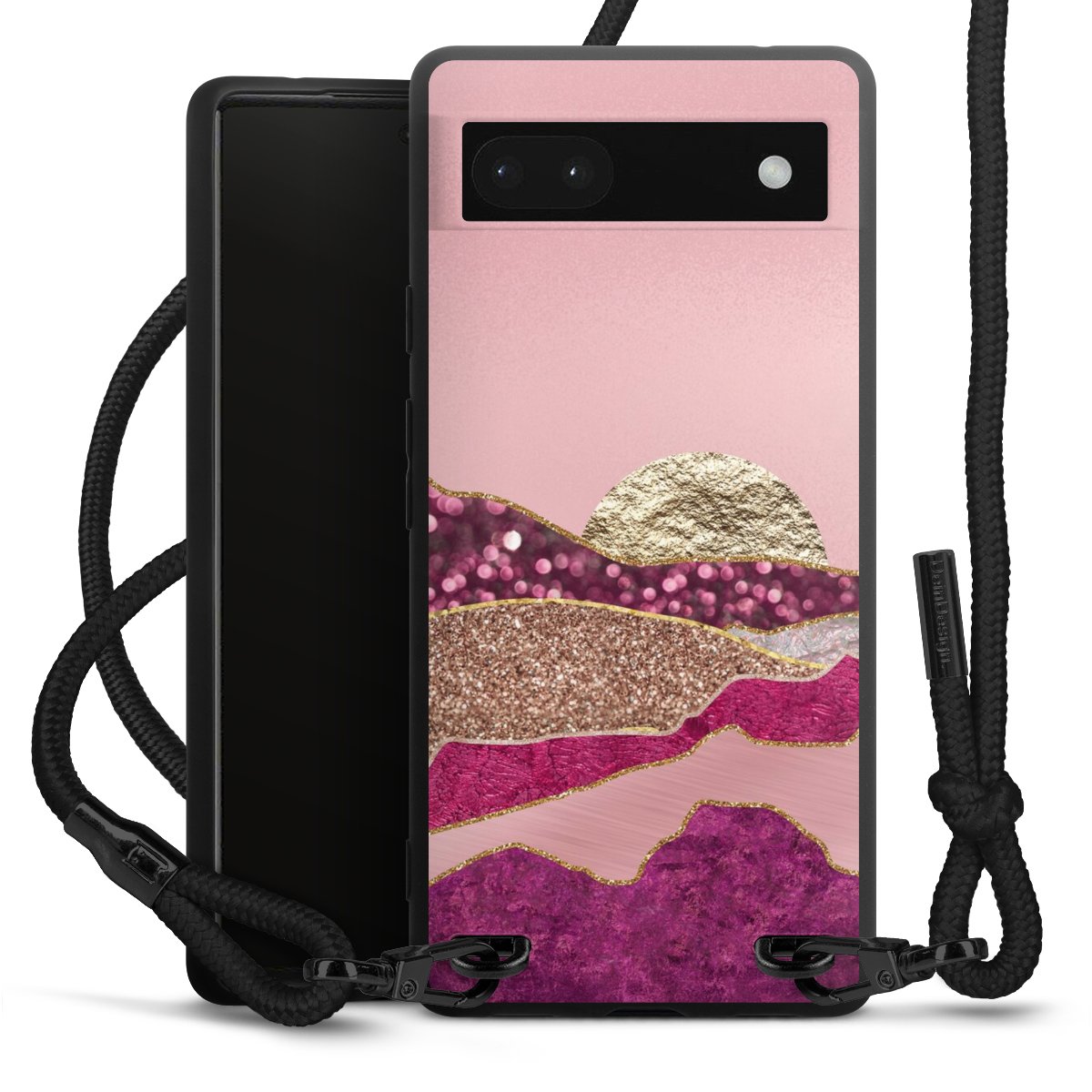We use the solid direct print process for this phone case, which is why the print area only covers the back and the edge remains unprinted. The case to wear around your neck can be ordered unprinted, fully printed, or partially printed. For your design, either choose one of our exclusive shop motifs or get creative and create your own design, for example with photos and overlays. Design your own personal trend accessory and make an individual statement on the streets!