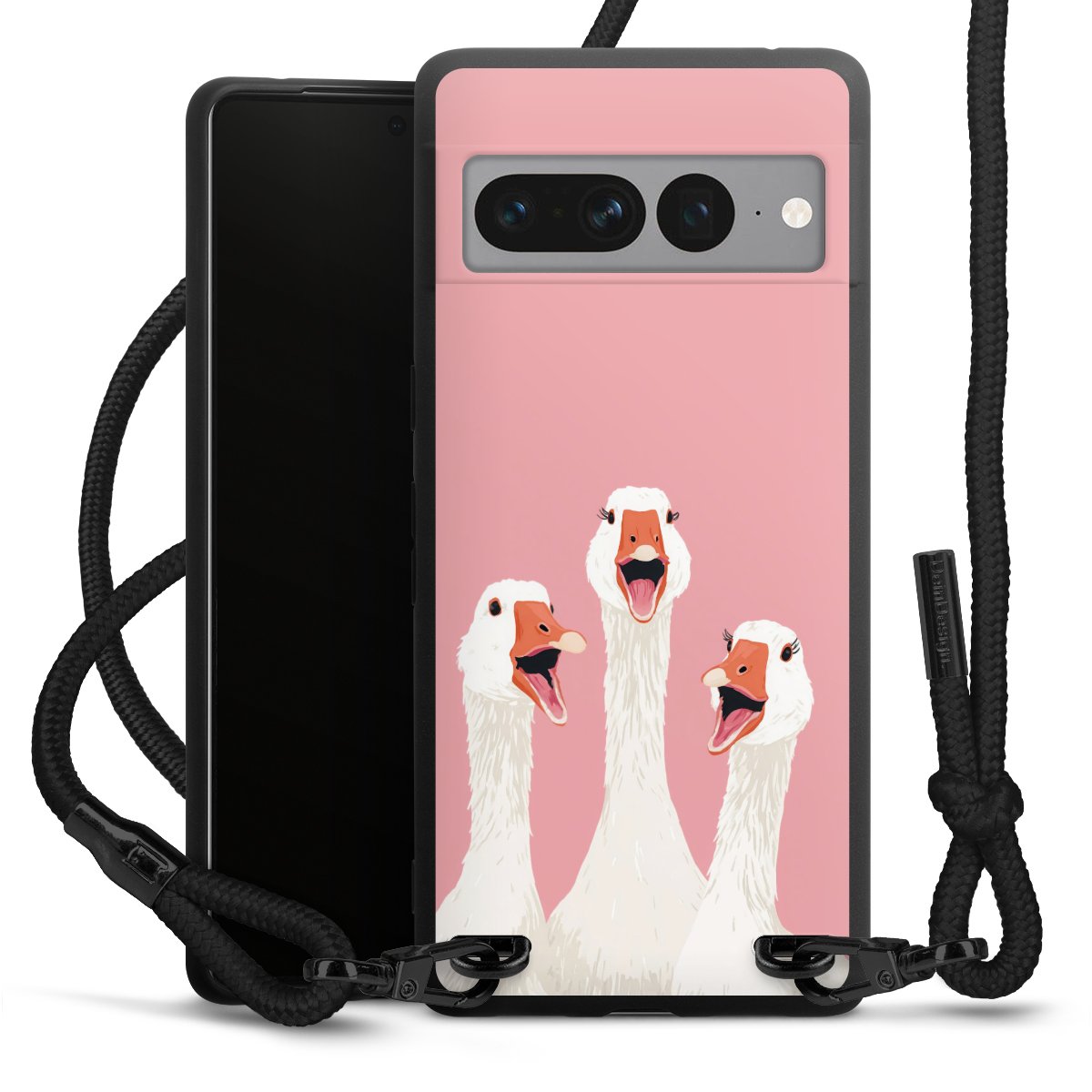 We use the solid direct print process for this phone case, which is why the print area only covers the back and the edge remains unprinted. The case to wear around your neck can be ordered unprinted, fully printed, or partially printed. For your design, either choose one of our exclusive shop motifs or get creative and create your own design, for example with photos and overlays. Design your own personal trend accessory and make an individual statement on the streets!