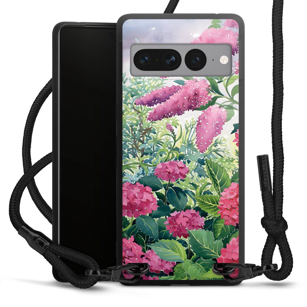 The matt black silicone case is made of flexible TPU (thermoplastic polyurethane) and offers robust protection. The durable, unbreakable material makes the cover flexible and dimensionally stable at the same time. The matte surface makes your design stand out more and is less susceptible to fingerprints and dirt. The stylish trend accessory fits comfortably in the hand and is perfectly complemented by the fabric (polyester) mobile phone strap. The braided fabric strap is approx. 1.70 metres long with a diameter of approx. 0.5 cm. Due to the special knotting technique, the length of the strap can be adjusted by simply pulling it, so that you can adapt it individually to your wishes. The practical case to wear around your neck is available with the fabric strap in black. As a little icing on the cake, we have provided the strap with a chic metal fastener in matt black. The strap is securely fastened to the case with loops made of high-quality genuine leather and press studs. The ends of the fabric strap are covered with metallic end caps and thus protected from fraying.