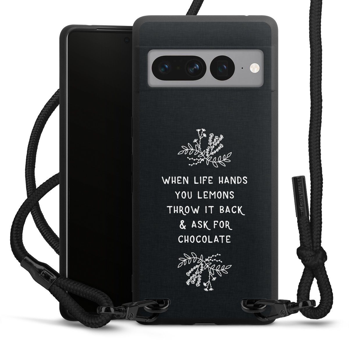 The matt black silicone case is made of flexible TPU (thermoplastic polyurethane) and offers robust protection. The durable, unbreakable material makes the cover flexible and dimensionally stable at the same time. The matte surface makes your design stand out more and is less susceptible to fingerprints and dirt. The stylish trend accessory fits comfortably in the hand and is perfectly complemented by the fabric (polyester) mobile phone strap. The braided fabric strap is approx. 1.70 metres long with a diameter of approx. 0.5 cm. Due to the special knotting technique, the length of the strap can be adjusted by simply pulling it, so that you can adapt it individually to your wishes. The practical case to wear around your neck is available with the fabric strap in black. As a little icing on the cake, we have provided the strap with a chic metal fastener in matt black. The strap is securely fastened to the case with loops made of high-quality genuine leather and press studs. The ends of the fabric strap are covered with metallic end caps and thus protected from fraying.