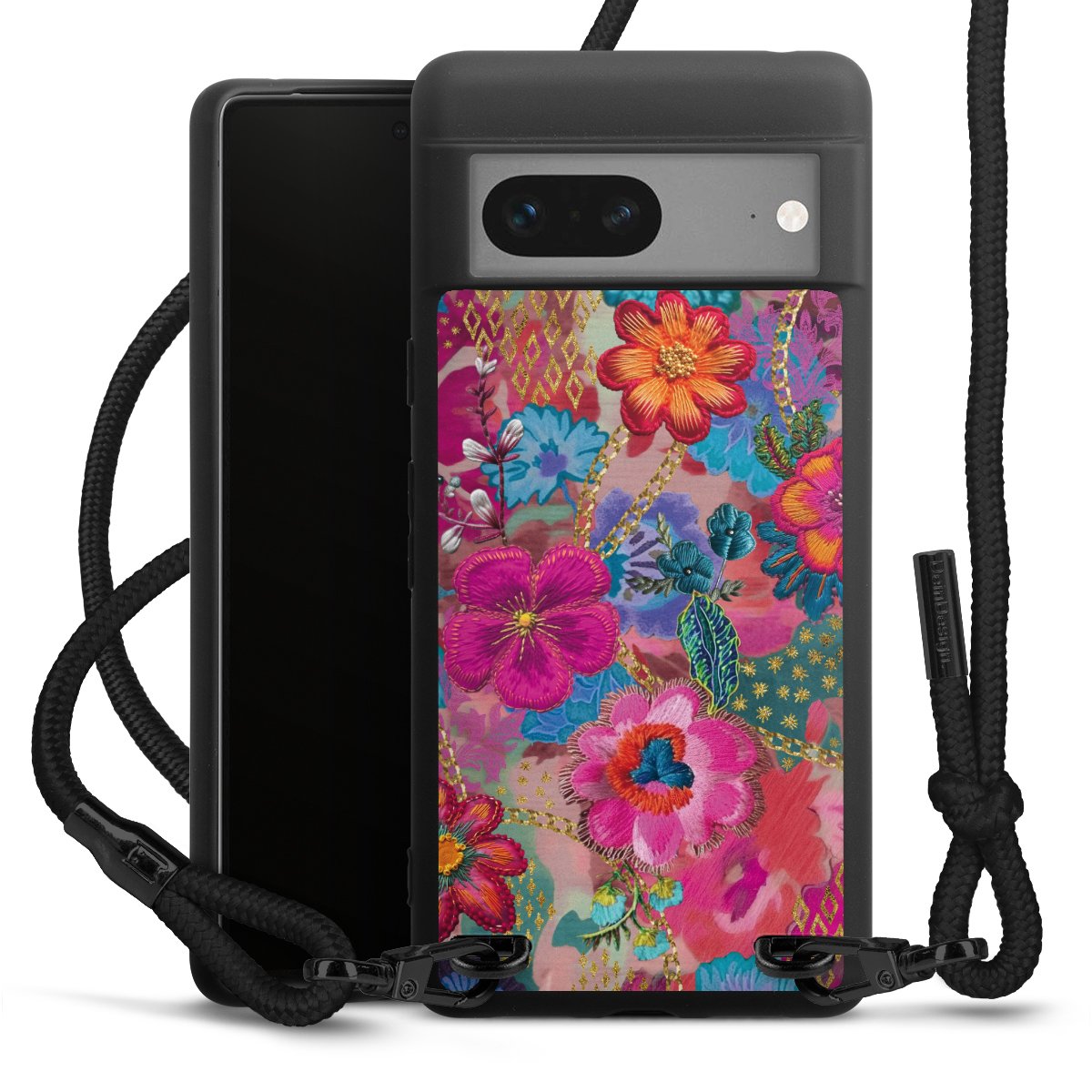 We use the solid direct print process for this phone case, which is why the print area only covers the back and the edge remains unprinted. The case to wear around your neck can be ordered unprinted, fully printed, or partially printed. For your design, either choose one of our exclusive shop motifs or get creative and create your own design, for example with photos and overlays. Design your own personal trend accessory and make an individual statement on the streets!
