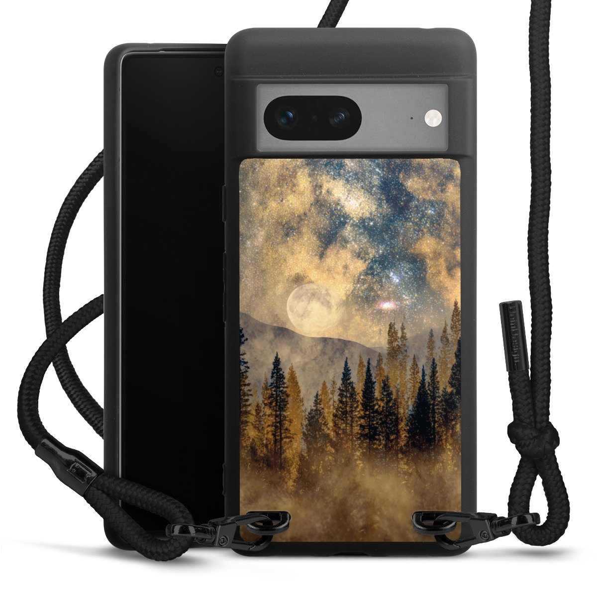 We use the solid direct print process for this phone case, which is why the print area only covers the back and the edge remains unprinted. The case to wear around your neck can be ordered unprinted, fully printed, or partially printed. For your design, either choose one of our exclusive shop motifs or get creative and create your own design, for example with photos and overlays. Design your own personal trend accessory and make an individual statement on the streets!
