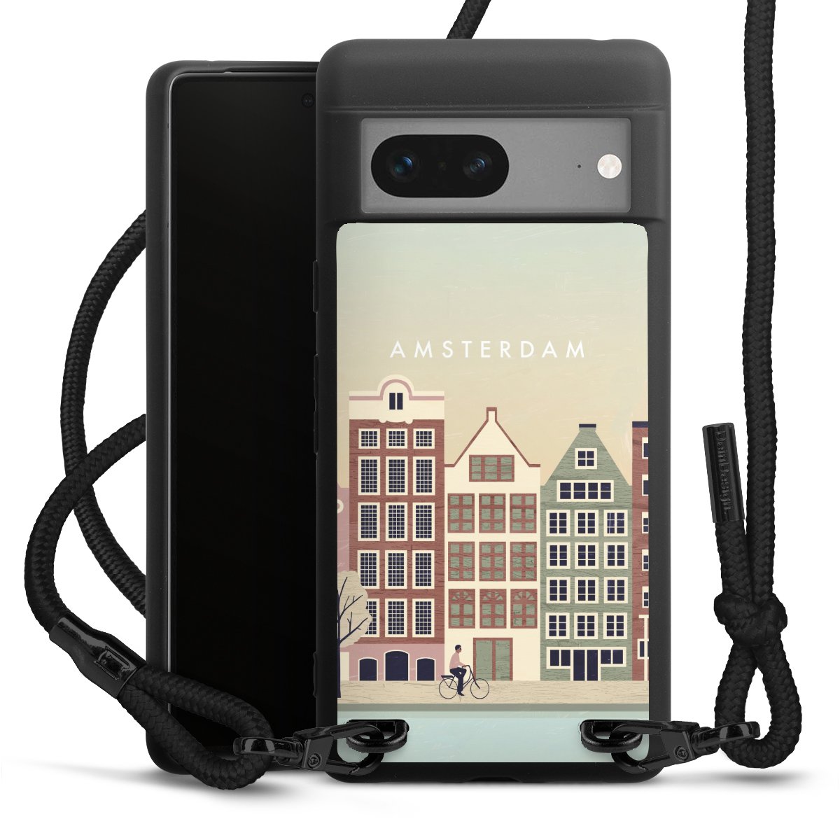We use the solid direct print process for this phone case, which is why the print area only covers the back and the edge remains unprinted. The case to wear around your neck can be ordered unprinted, fully printed, or partially printed. For your design, either choose one of our exclusive shop motifs or get creative and create your own design, for example with photos and overlays. Design your own personal trend accessory and make an individual statement on the streets!