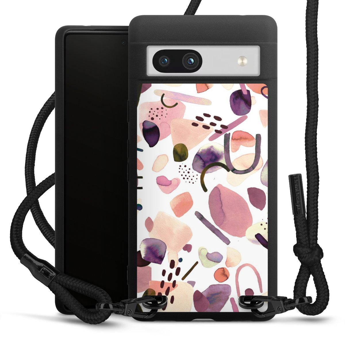 We use the solid direct print process for this phone case, which is why the print area only covers the back and the edge remains unprinted. The case to wear around your neck can be ordered unprinted, fully printed, or partially printed. For your design, either choose one of our exclusive shop motifs or get creative and create your own design, for example with photos and overlays. Design your own personal trend accessory and make an individual statement on the streets!