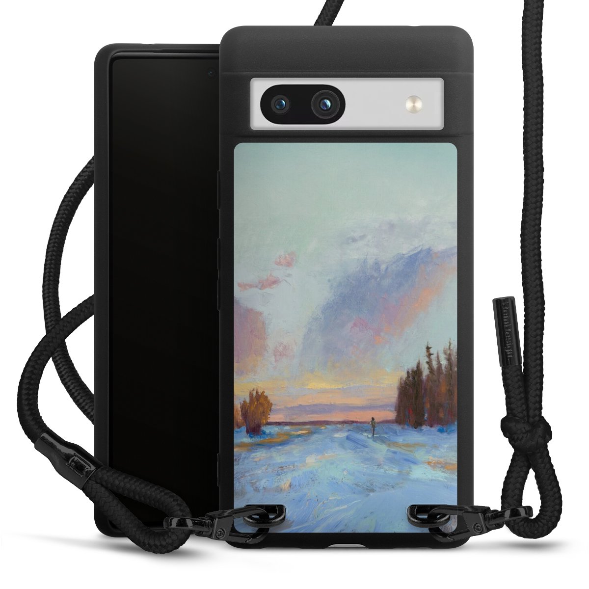 We use the solid direct print process for this phone case, which is why the print area only covers the back and the edge remains unprinted. The case to wear around your neck can be ordered unprinted, fully printed, or partially printed. For your design, either choose one of our exclusive shop motifs or get creative and create your own design, for example with photos and overlays. Design your own personal trend accessory and make an individual statement on the streets!
