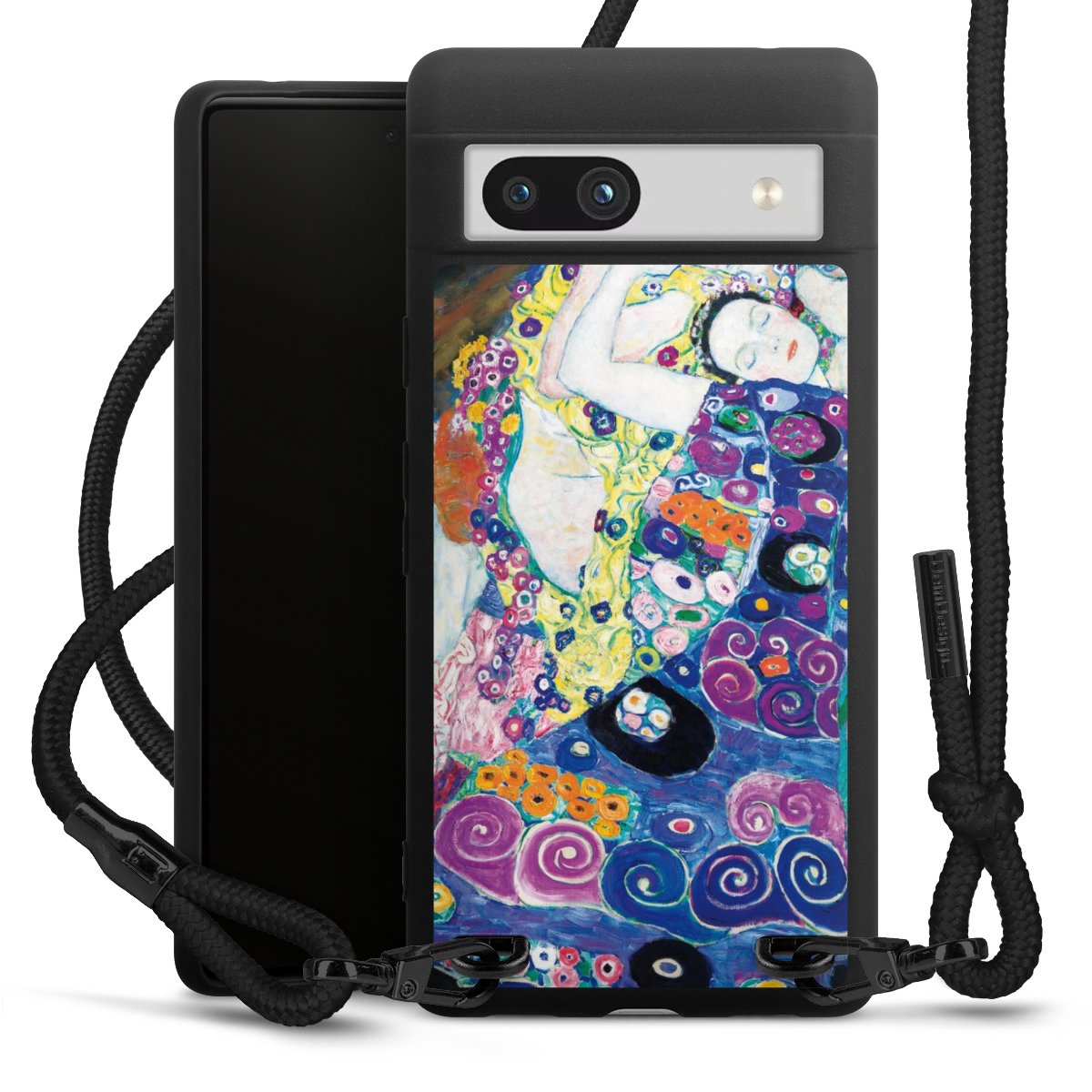 The matt black silicone case is made of flexible TPU (thermoplastic polyurethane) and offers robust protection. The durable, unbreakable material makes the cover flexible and dimensionally stable at the same time. The matte surface makes your design stand out more and is less susceptible to fingerprints and dirt. The stylish trend accessory fits comfortably in the hand and is perfectly complemented by the fabric (polyester) mobile phone strap. The braided fabric strap is approx. 1.70 metres long with a diameter of approx. 0.5 cm. Due to the special knotting technique, the length of the strap can be adjusted by simply pulling it, so that you can adapt it individually to your wishes. The practical case to wear around your neck is available with the fabric strap in black. As a little icing on the cake, we have provided the strap with a chic metal fastener in matt black. The strap is securely fastened to the case with loops made of high-quality genuine leather and press studs. The ends of the fabric strap are covered with metallic end caps and thus protected from fraying.
