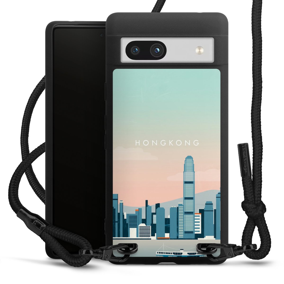 We use the solid direct print process for this phone case, which is why the print area only covers the back and the edge remains unprinted. The case to wear around your neck can be ordered unprinted, fully printed, or partially printed. For your design, either choose one of our exclusive shop motifs or get creative and create your own design, for example with photos and overlays. Design your own personal trend accessory and make an individual statement on the streets!