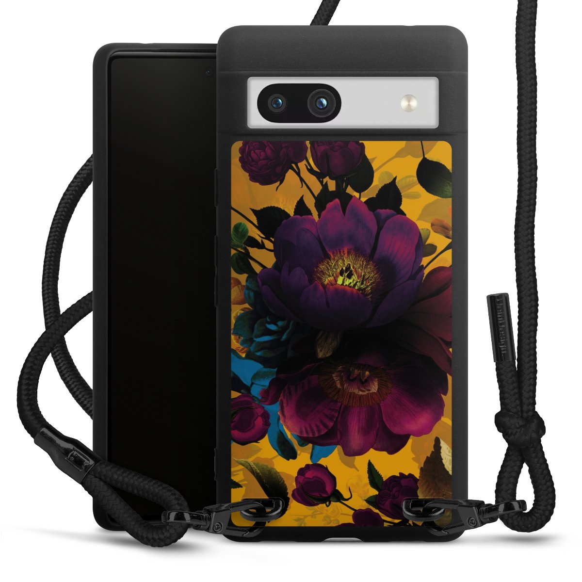 The matt black silicone case is made of flexible TPU (thermoplastic polyurethane) and offers robust protection. The durable, unbreakable material makes the cover flexible and dimensionally stable at the same time. The matte surface makes your design stand out more and is less susceptible to fingerprints and dirt. The stylish trend accessory fits comfortably in the hand and is perfectly complemented by the fabric (polyester) mobile phone strap. The braided fabric strap is approx. 1.70 metres long with a diameter of approx. 0.5 cm. Due to the special knotting technique, the length of the strap can be adjusted by simply pulling it, so that you can adapt it individually to your wishes. The practical case to wear around your neck is available with the fabric strap in black. As a little icing on the cake, we have provided the strap with a chic metal fastener in matt black. The strap is securely fastened to the case with loops made of high-quality genuine leather and press studs. The ends of the fabric strap are covered with metallic end caps and thus protected from fraying.