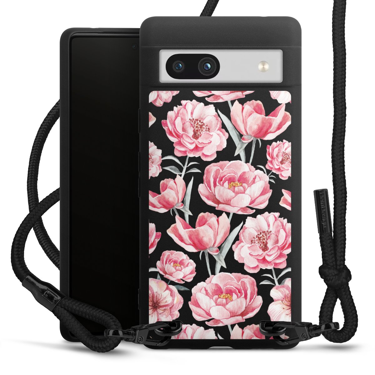 The matt black silicone case is made of flexible TPU (thermoplastic polyurethane) and offers robust protection. The durable, unbreakable material makes the cover flexible and dimensionally stable at the same time. The matte surface makes your design stand out more and is less susceptible to fingerprints and dirt. The stylish trend accessory fits comfortably in the hand and is perfectly complemented by the fabric (polyester) mobile phone strap. The braided fabric strap is approx. 1.70 metres long with a diameter of approx. 0.5 cm. Due to the special knotting technique, the length of the strap can be adjusted by simply pulling it, so that you can adapt it individually to your wishes. The practical case to wear around your neck is available with the fabric strap in black. As a little icing on the cake, we have provided the strap with a chic metal fastener in matt black. The strap is securely fastened to the case with loops made of high-quality genuine leather and press studs. The ends of the fabric strap are covered with metallic end caps and thus protected from fraying.