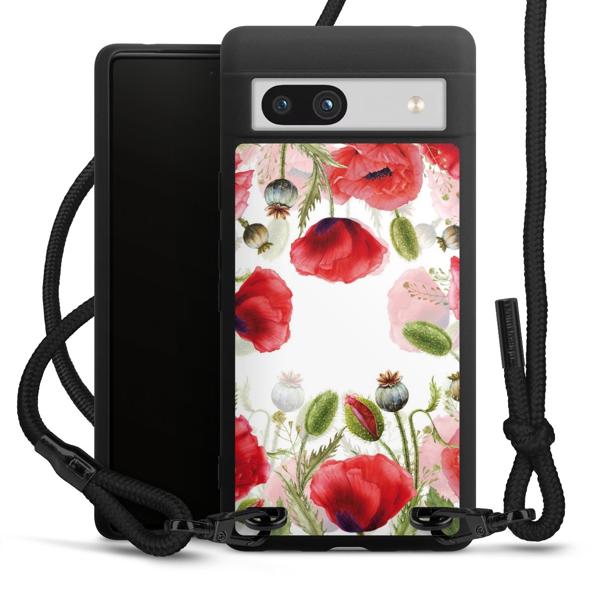 The matt black silicone case is made of flexible TPU (thermoplastic polyurethane) and offers robust protection. The durable, unbreakable material makes the cover flexible and dimensionally stable at the same time. The matte surface makes your design stand out more and is less susceptible to fingerprints and dirt. The stylish trend accessory fits comfortably in the hand and is perfectly complemented by the fabric (polyester) mobile phone strap. The braided fabric strap is approx. 1.70 metres long with a diameter of approx. 0.5 cm. Due to the special knotting technique, the length of the strap can be adjusted by simply pulling it, so that you can adapt it individually to your wishes. The practical case to wear around your neck is available with the fabric strap in black. As a little icing on the cake, we have provided the strap with a chic metal fastener in matt black. The strap is securely fastened to the case with loops made of high-quality genuine leather and press studs. The ends of the fabric strap are covered with metallic end caps and thus protected from fraying.