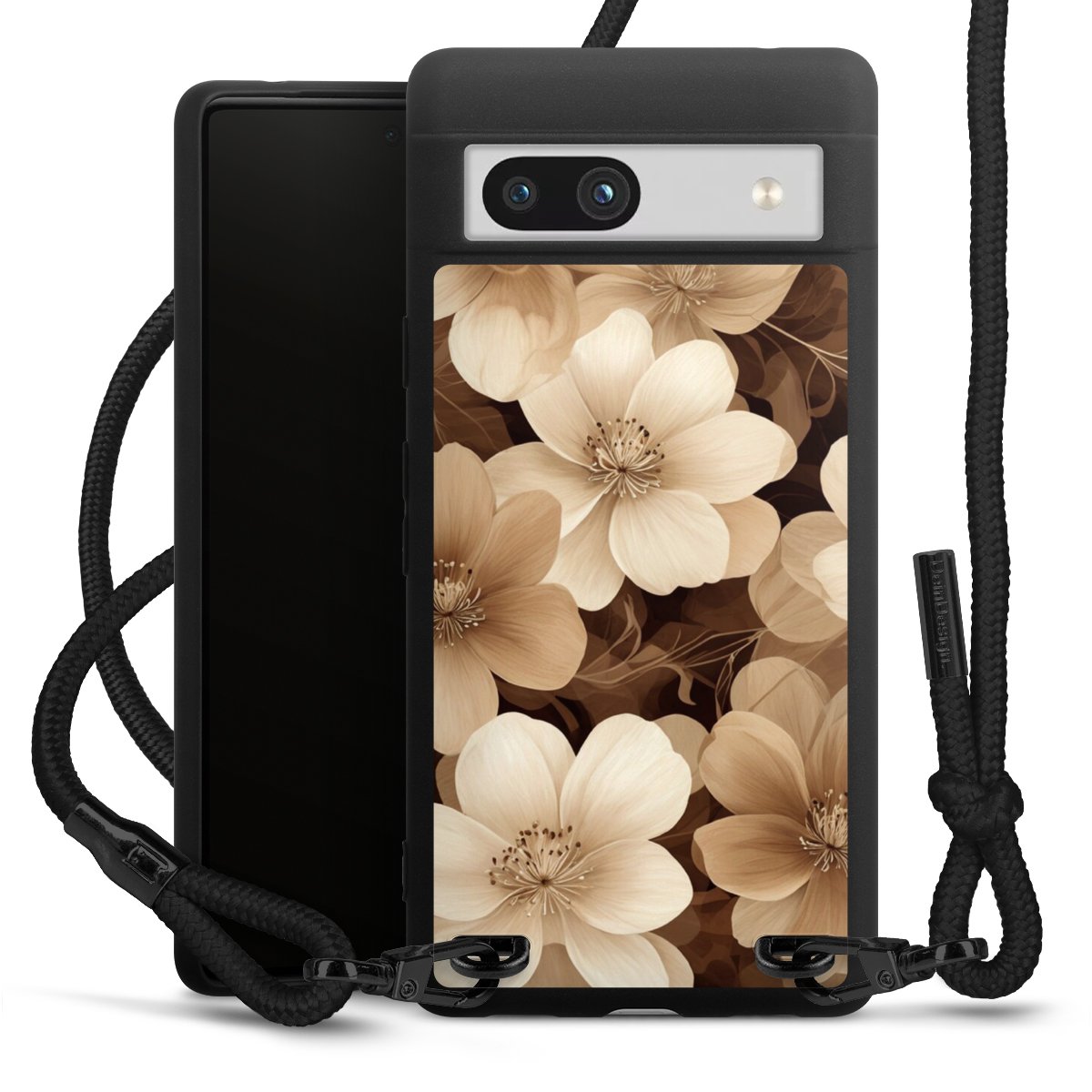 The matt black silicone case is made of flexible TPU (thermoplastic polyurethane) and offers robust protection. The durable, unbreakable material makes the cover flexible and dimensionally stable at the same time. The matte surface makes your design stand out more and is less susceptible to fingerprints and dirt. The stylish trend accessory fits comfortably in the hand and is perfectly complemented by the fabric (polyester) mobile phone strap. The braided fabric strap is approx. 1.70 metres long with a diameter of approx. 0.5 cm. Due to the special knotting technique, the length of the strap can be adjusted by simply pulling it, so that you can adapt it individually to your wishes. The practical case to wear around your neck is available with the fabric strap in black. As a little icing on the cake, we have provided the strap with a chic metal fastener in matt black. The strap is securely fastened to the case with loops made of high-quality genuine leather and press studs. The ends of the fabric strap are covered with metallic end caps and thus protected from fraying.