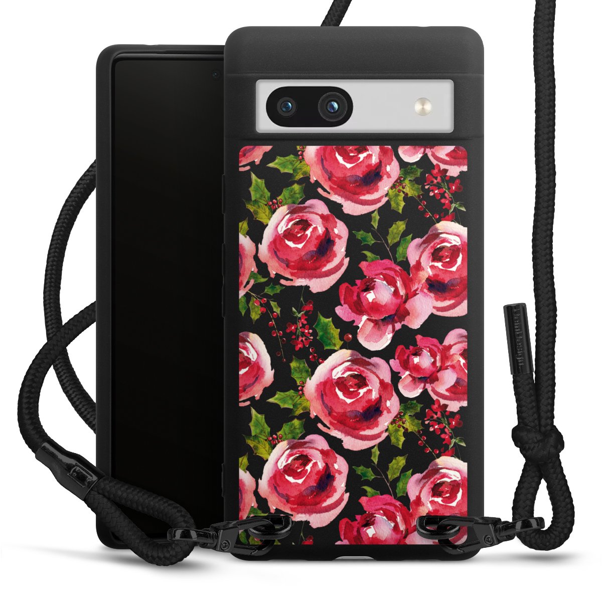 The matt black silicone case is made of flexible TPU (thermoplastic polyurethane) and offers robust protection. The durable, unbreakable material makes the cover flexible and dimensionally stable at the same time. The matte surface makes your design stand out more and is less susceptible to fingerprints and dirt. The stylish trend accessory fits comfortably in the hand and is perfectly complemented by the fabric (polyester) mobile phone strap. The braided fabric strap is approx. 1.70 metres long with a diameter of approx. 0.5 cm. Due to the special knotting technique, the length of the strap can be adjusted by simply pulling it, so that you can adapt it individually to your wishes. The practical case to wear around your neck is available with the fabric strap in black. As a little icing on the cake, we have provided the strap with a chic metal fastener in matt black. The strap is securely fastened to the case with loops made of high-quality genuine leather and press studs. The ends of the fabric strap are covered with metallic end caps and thus protected from fraying.