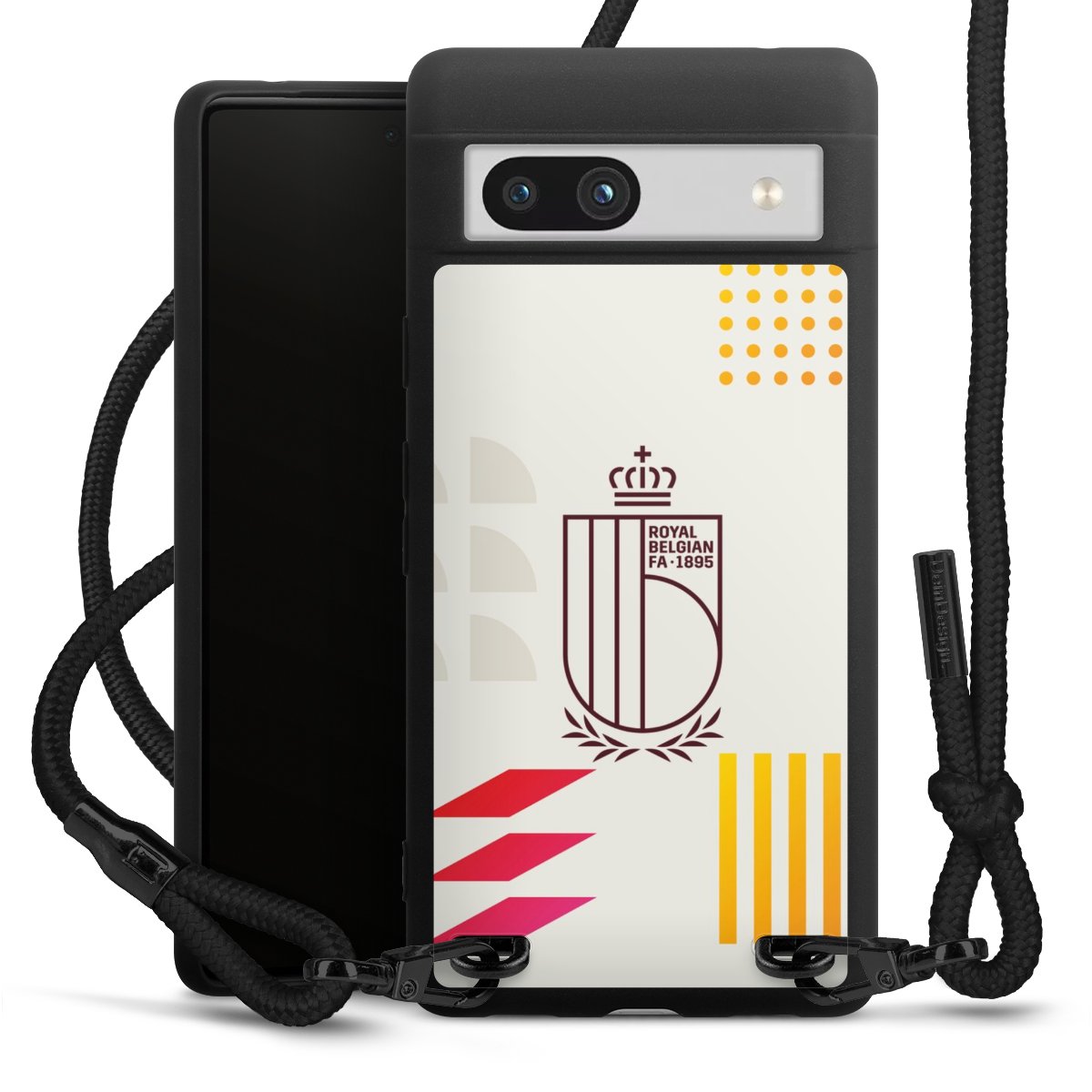 The matt black silicone case is made of flexible TPU (thermoplastic polyurethane) and offers robust protection. The durable, unbreakable material makes the cover flexible and dimensionally stable at the same time. The matte surface makes your design stand out more and is less susceptible to fingerprints and dirt. The stylish trend accessory fits comfortably in the hand and is perfectly complemented by the fabric (polyester) mobile phone strap. The braided fabric strap is approx. 1.70 metres long with a diameter of approx. 0.5 cm. Due to the special knotting technique, the length of the strap can be adjusted by simply pulling it, so that you can adapt it individually to your wishes. The practical case to wear around your neck is available with the fabric strap in black. As a little icing on the cake, we have provided the strap with a chic metal fastener in matt black. The strap is securely fastened to the case with loops made of high-quality genuine leather and press studs. The ends of the fabric strap are covered with metallic end caps and thus protected from fraying.