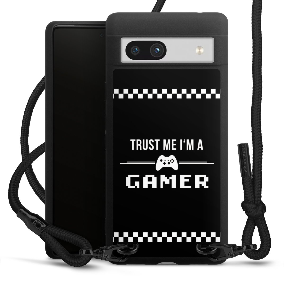 The matt black silicone case is made of flexible TPU (thermoplastic polyurethane) and offers robust protection. The durable, unbreakable material makes the cover flexible and dimensionally stable at the same time. The matte surface makes your design stand out more and is less susceptible to fingerprints and dirt. The stylish trend accessory fits comfortably in the hand and is perfectly complemented by the fabric (polyester) mobile phone strap. The braided fabric strap is approx. 1.70 metres long with a diameter of approx. 0.5 cm. Due to the special knotting technique, the length of the strap can be adjusted by simply pulling it, so that you can adapt it individually to your wishes. The practical case to wear around your neck is available with the fabric strap in black. As a little icing on the cake, we have provided the strap with a chic metal fastener in matt black. The strap is securely fastened to the case with loops made of high-quality genuine leather and press studs. The ends of the fabric strap are covered with metallic end caps and thus protected from fraying.