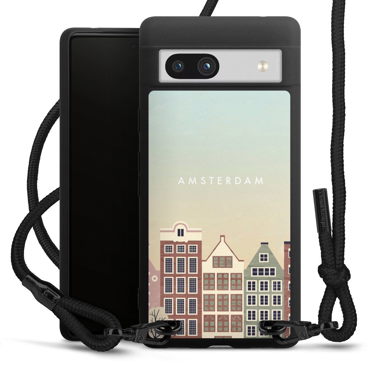 We use the solid direct print process for this phone case, which is why the print area only covers the back and the edge remains unprinted. The case to wear around your neck can be ordered unprinted, fully printed, or partially printed. For your design, either choose one of our exclusive shop motifs or get creative and create your own design, for example with photos and overlays. Design your own personal trend accessory and make an individual statement on the streets!