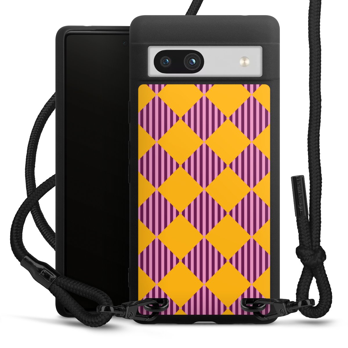 We use the solid direct print process for this phone case, which is why the print area only covers the back and the edge remains unprinted. The case to wear around your neck can be ordered unprinted, fully printed, or partially printed. For your design, either choose one of our exclusive shop motifs or get creative and create your own design, for example with photos and overlays. Design your own personal trend accessory and make an individual statement on the streets!