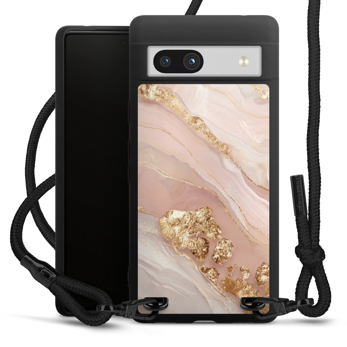 The matt black silicone case is made of flexible TPU (thermoplastic polyurethane) and offers robust protection. The durable, unbreakable material makes the cover flexible and dimensionally stable at the same time. The matte surface makes your design stand out more and is less susceptible to fingerprints and dirt. The stylish trend accessory fits comfortably in the hand and is perfectly complemented by the fabric (polyester) mobile phone strap. The braided fabric strap is approx. 1.70 metres long with a diameter of approx. 0.5 cm. Due to the special knotting technique, the length of the strap can be adjusted by simply pulling it, so that you can adapt it individually to your wishes. The practical case to wear around your neck is available with the fabric strap in black. As a little icing on the cake, we have provided the strap with a chic metal fastener in matt black. The strap is securely fastened to the case with loops made of high-quality genuine leather and press studs. The ends of the fabric strap are covered with metallic end caps and thus protected from fraying.