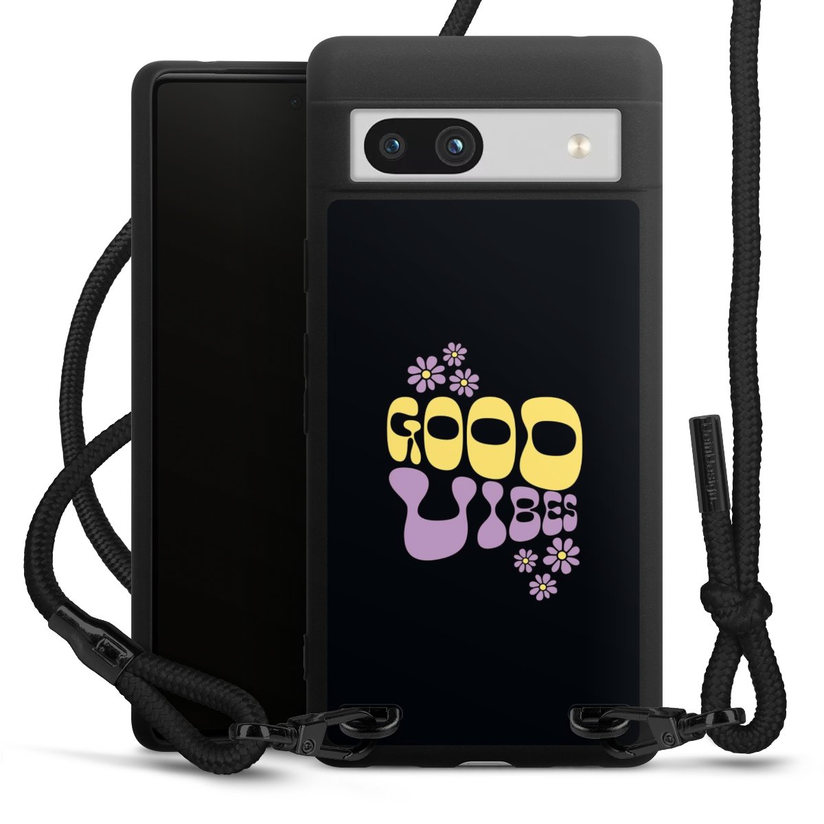 The matt black silicone case is made of flexible TPU (thermoplastic polyurethane) and offers robust protection. The durable, unbreakable material makes the cover flexible and dimensionally stable at the same time. The matte surface makes your design stand out more and is less susceptible to fingerprints and dirt. The stylish trend accessory fits comfortably in the hand and is perfectly complemented by the fabric (polyester) mobile phone strap. The braided fabric strap is approx. 1.70 metres long with a diameter of approx. 0.5 cm. Due to the special knotting technique, the length of the strap can be adjusted by simply pulling it, so that you can adapt it individually to your wishes. The practical case to wear around your neck is available with the fabric strap in black. As a little icing on the cake, we have provided the strap with a chic metal fastener in matt black. The strap is securely fastened to the case with loops made of high-quality genuine leather and press studs. The ends of the fabric strap are covered with metallic end caps and thus protected from fraying.