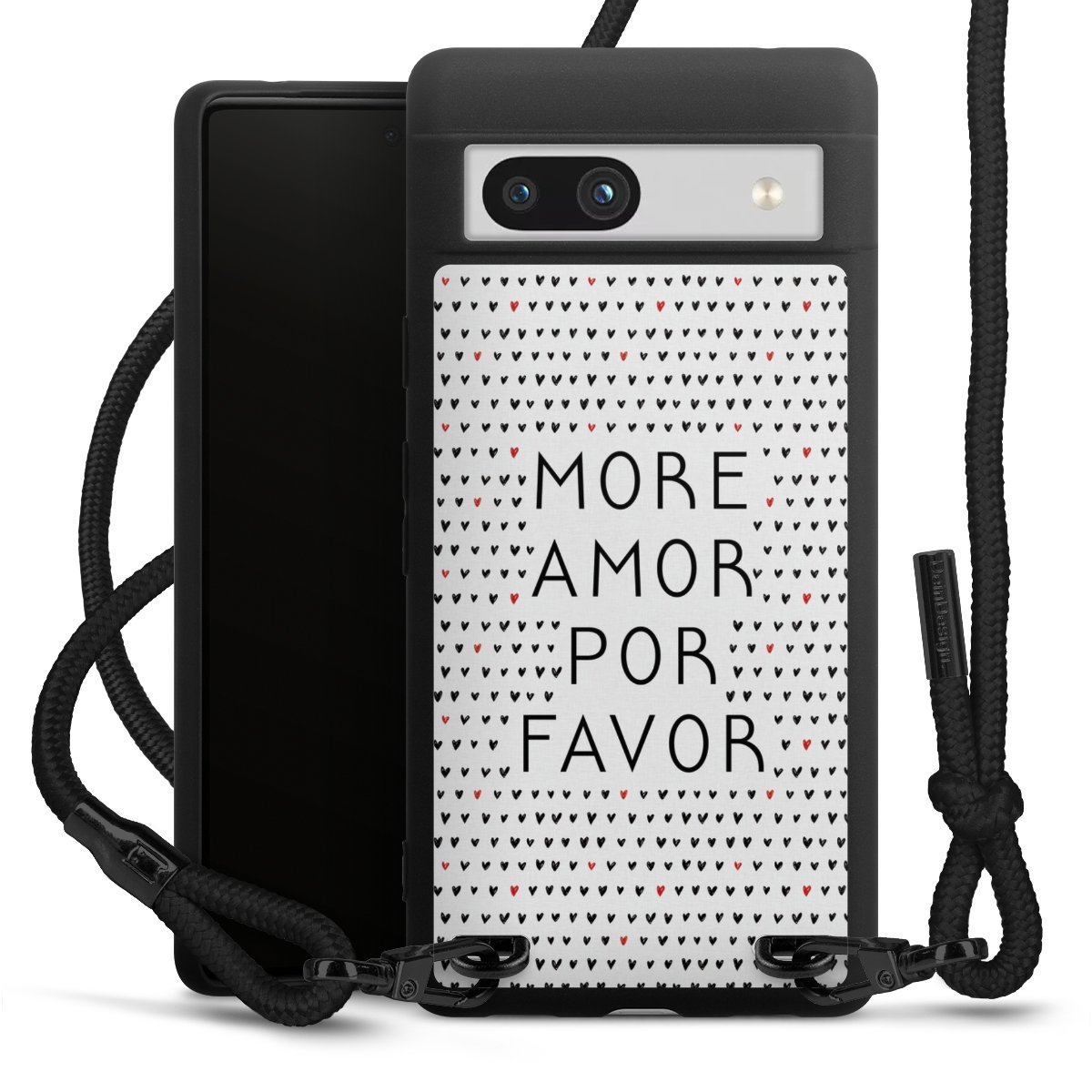 We use the solid direct print process for this phone case, which is why the print area only covers the back and the edge remains unprinted. The case to wear around your neck can be ordered unprinted, fully printed, or partially printed. For your design, either choose one of our exclusive shop motifs or get creative and create your own design, for example with photos and overlays. Design your own personal trend accessory and make an individual statement on the streets!