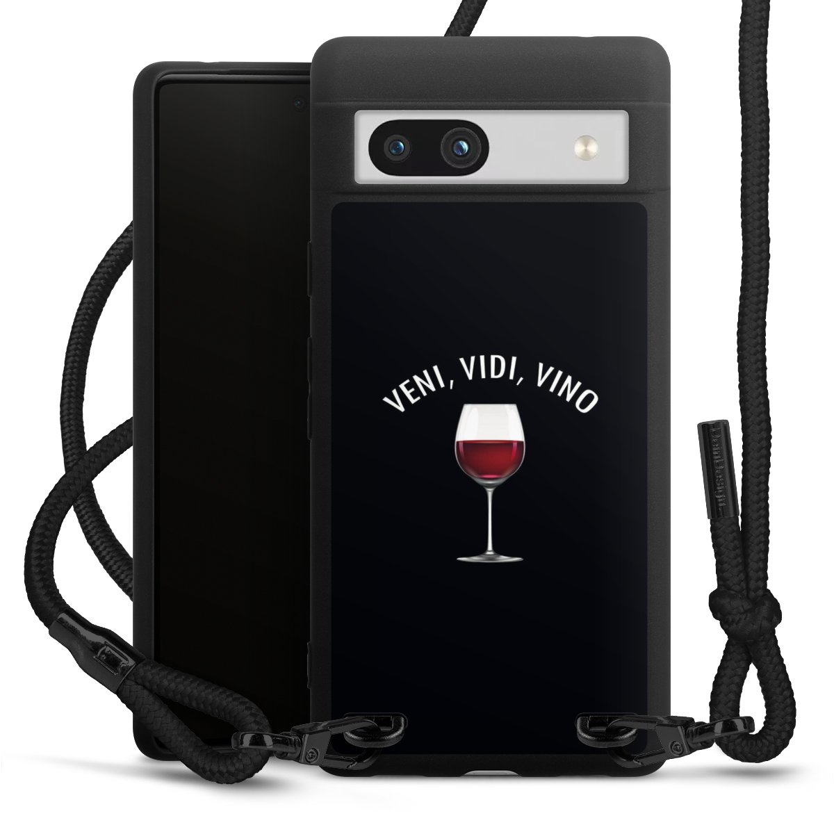 The matt black silicone case is made of flexible TPU (thermoplastic polyurethane) and offers robust protection. The durable, unbreakable material makes the cover flexible and dimensionally stable at the same time. The matte surface makes your design stand out more and is less susceptible to fingerprints and dirt. The stylish trend accessory fits comfortably in the hand and is perfectly complemented by the fabric (polyester) mobile phone strap. The braided fabric strap is approx. 1.70 metres long with a diameter of approx. 0.5 cm. Due to the special knotting technique, the length of the strap can be adjusted by simply pulling it, so that you can adapt it individually to your wishes. The practical case to wear around your neck is available with the fabric strap in black. As a little icing on the cake, we have provided the strap with a chic metal fastener in matt black. The strap is securely fastened to the case with loops made of high-quality genuine leather and press studs. The ends of the fabric strap are covered with metallic end caps and thus protected from fraying.