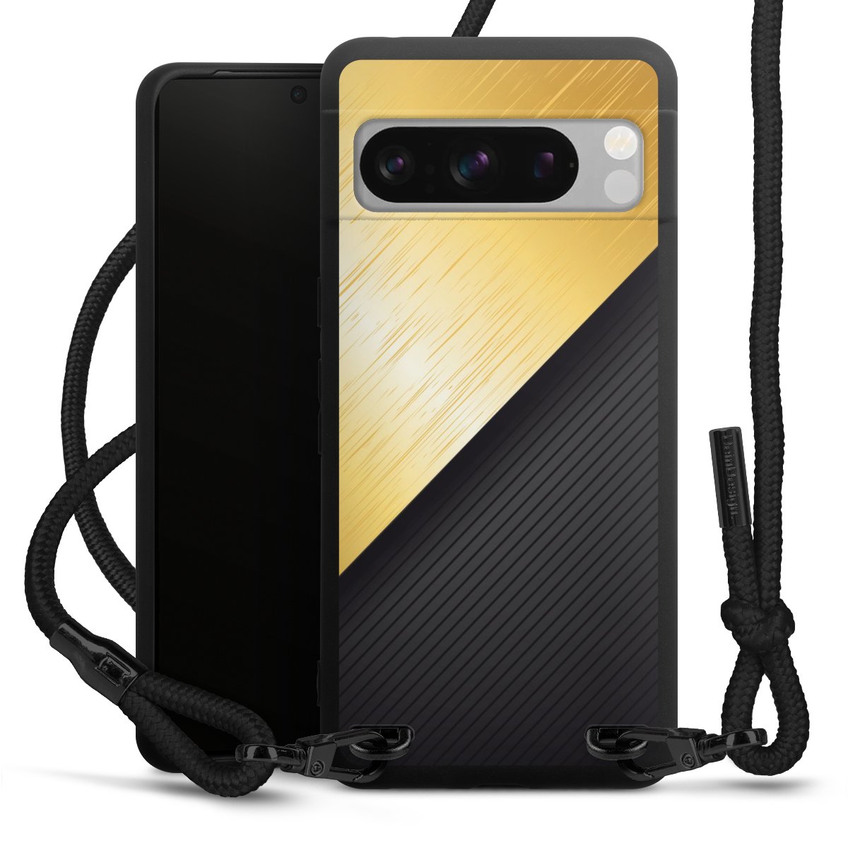 Pure Black: Phone case, fabric strap and metal details in stylish matt black.