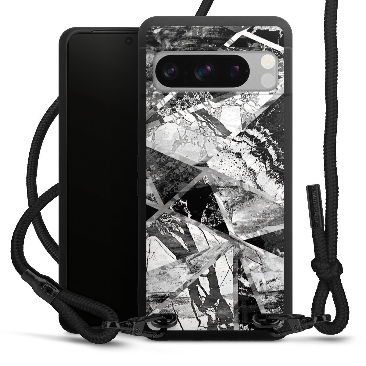Pure Black: Phone case, fabric strap and metal details in stylish matt black.