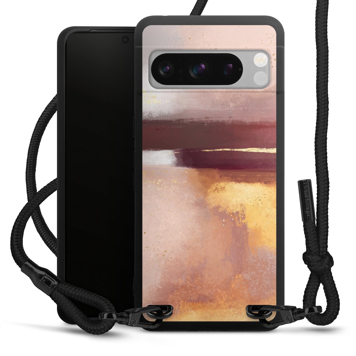 We use the solid direct print process for this phone case, which is why the print area only covers the back and the edge remains unprinted. The case to wear around your neck can be ordered unprinted, fully printed, or partially printed. For your design, either choose one of our exclusive shop motifs or get creative and create your own design, for example with photos and overlays. Design your own personal trend accessory and make an individual statement on the streets!