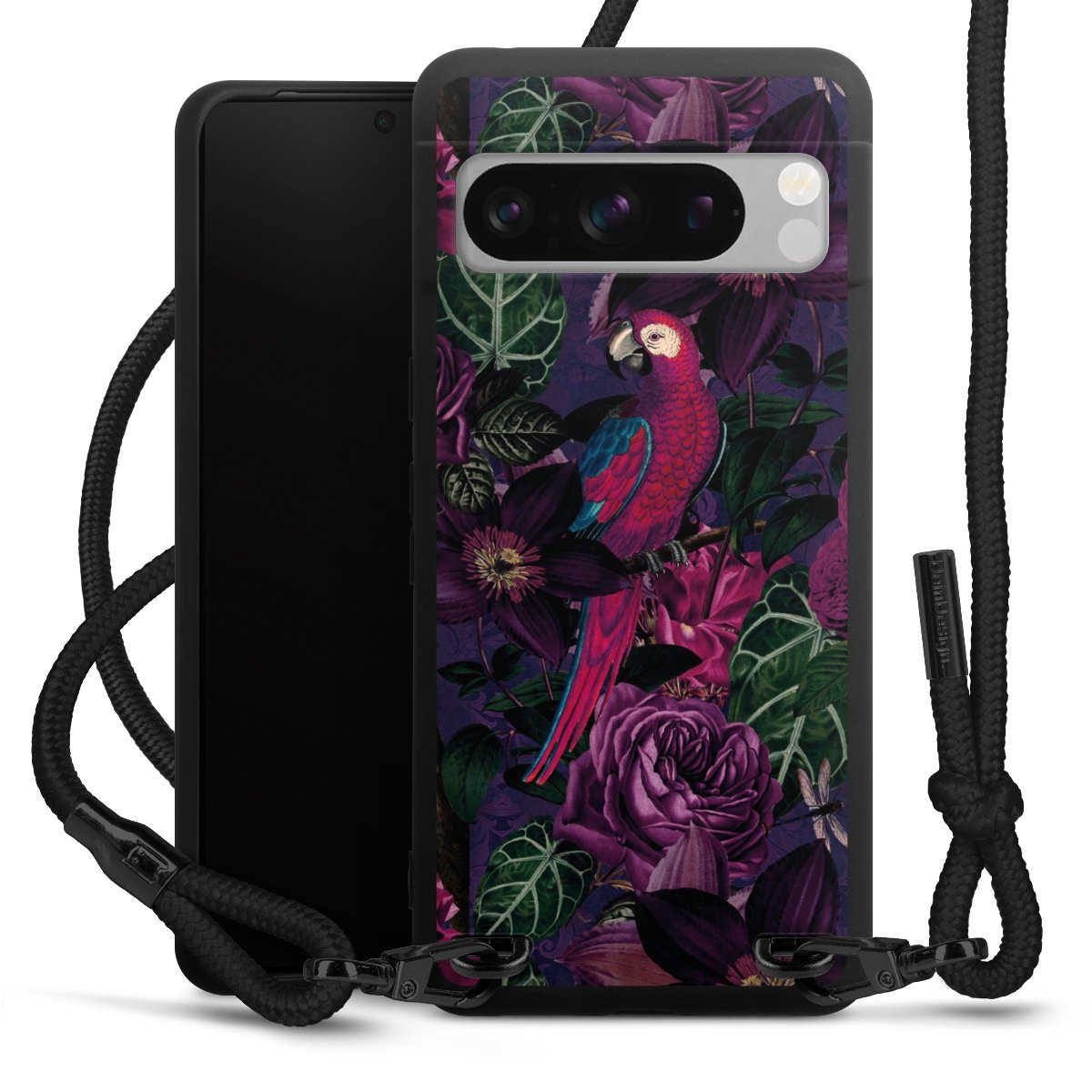 Pure Black: Phone case, fabric strap and metal details in stylish matt black.