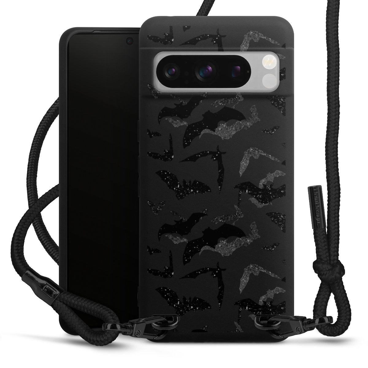 Pure Black: Phone case, fabric strap and metal details in stylish matt black.