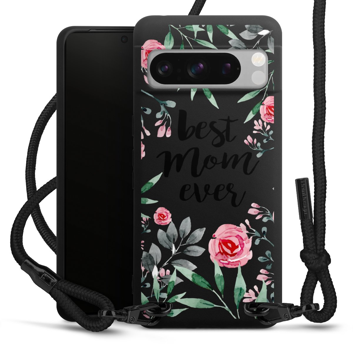 The matt black silicone case is made of flexible TPU (thermoplastic polyurethane) and offers robust protection. The durable, unbreakable material makes the cover flexible and dimensionally stable at the same time. The matte surface makes your design stand out more and is less susceptible to fingerprints and dirt. The stylish trend accessory fits comfortably in the hand and is perfectly complemented by the fabric (polyester) mobile phone strap. The braided fabric strap is approx. 1.70 metres long with a diameter of approx. 0.5 cm. Due to the special knotting technique, the length of the strap can be adjusted by simply pulling it, so that you can adapt it individually to your wishes. The practical case to wear around your neck is available with the fabric strap in black. As a little icing on the cake, we have provided the strap with a chic metal fastener in matt black. The strap is securely fastened to the case with loops made of high-quality genuine leather and press studs. The ends of the fabric strap are covered with metallic end caps and thus protected from fraying.