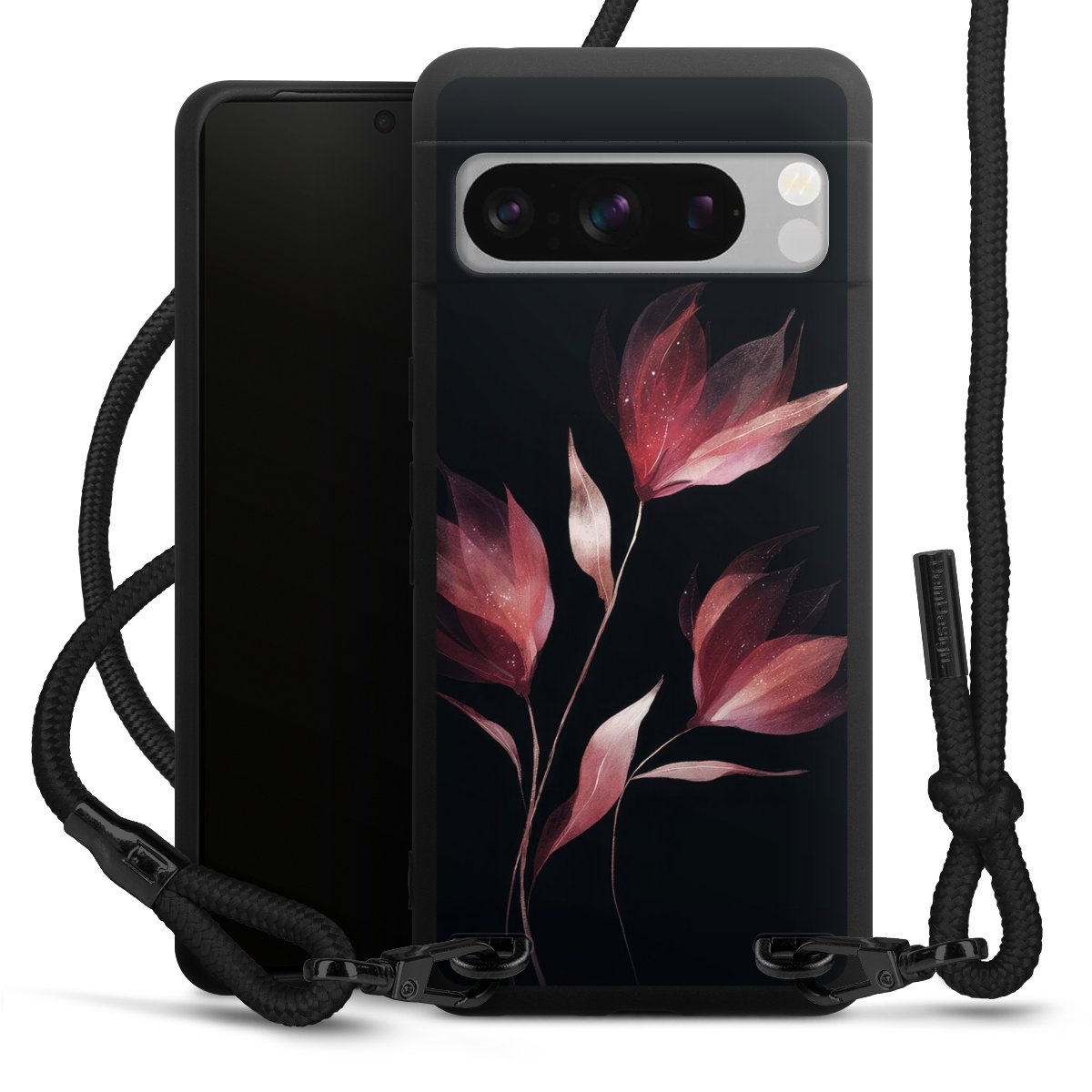 The matt black silicone case is made of flexible TPU (thermoplastic polyurethane) and offers robust protection. The durable, unbreakable material makes the cover flexible and dimensionally stable at the same time. The matte surface makes your design stand out more and is less susceptible to fingerprints and dirt. The stylish trend accessory fits comfortably in the hand and is perfectly complemented by the fabric (polyester) mobile phone strap. The braided fabric strap is approx. 1.70 metres long with a diameter of approx. 0.5 cm. Due to the special knotting technique, the length of the strap can be adjusted by simply pulling it, so that you can adapt it individually to your wishes. The practical case to wear around your neck is available with the fabric strap in black. As a little icing on the cake, we have provided the strap with a chic metal fastener in matt black. The strap is securely fastened to the case with loops made of high-quality genuine leather and press studs. The ends of the fabric strap are covered with metallic end caps and thus protected from fraying.
