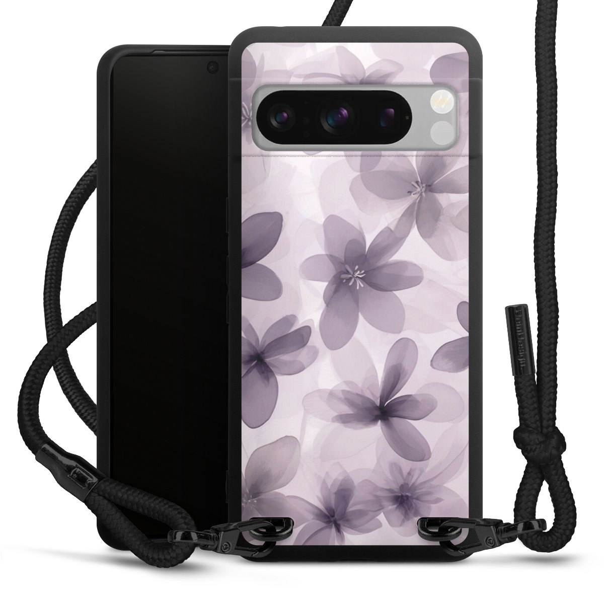 Pure Black: Phone case, fabric strap and metal details in stylish matt black.