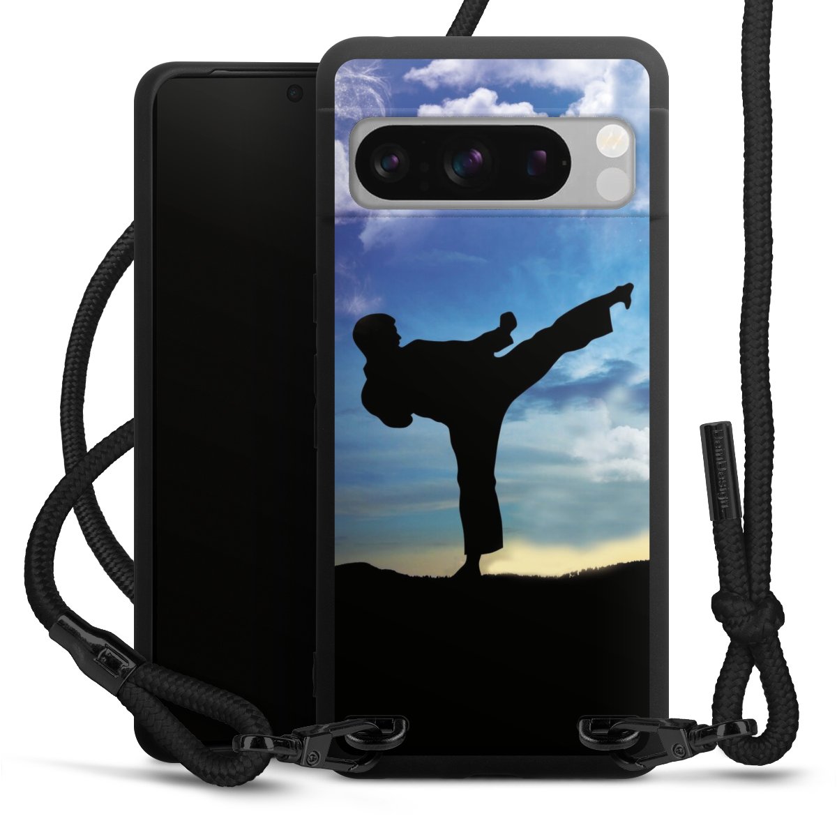 Pure Black: Phone case, fabric strap and metal details in stylish matt black.