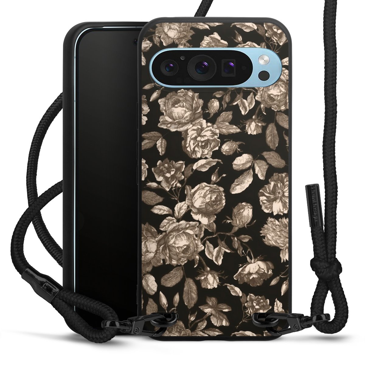 Pure Black: Phone case, fabric strap and metal details in stylish matt black.