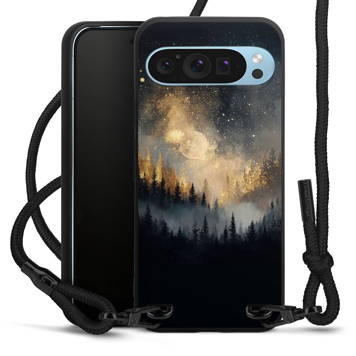 Pure Black: Phone case, fabric strap and metal details in stylish matt black.