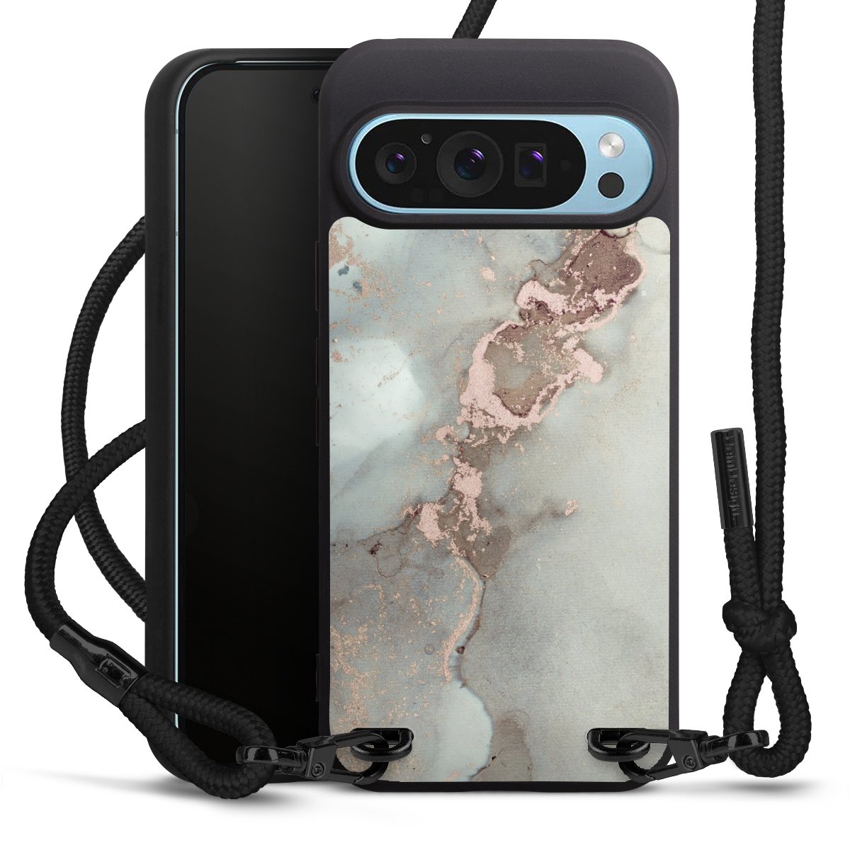 The matt black silicone case is made of flexible TPU (thermoplastic polyurethane) and offers robust protection. The durable, unbreakable material makes the cover flexible and dimensionally stable at the same time. The matte surface makes your design stand out more and is less susceptible to fingerprints and dirt. The stylish trend accessory fits comfortably in the hand and is perfectly complemented by the fabric (polyester) mobile phone strap. The braided fabric strap is approx. 1.70 metres long with a diameter of approx. 0.5 cm. Due to the special knotting technique, the length of the strap can be adjusted by simply pulling it, so that you can adapt it individually to your wishes. The practical case to wear around your neck is available with the fabric strap in black. As a little icing on the cake, we have provided the strap with a chic metal fastener in matt black. The strap is securely fastened to the case with loops made of high-quality genuine leather and press studs. The ends of the fabric strap are covered with metallic end caps and thus protected from fraying.