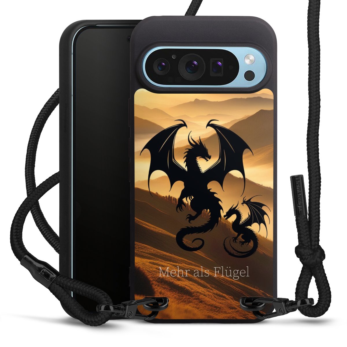 The matt black silicone case is made of flexible TPU (thermoplastic polyurethane) and offers robust protection. The durable, unbreakable material makes the cover flexible and dimensionally stable at the same time. The matte surface makes your design stand out more and is less susceptible to fingerprints and dirt. The stylish trend accessory fits comfortably in the hand and is perfectly complemented by the fabric (polyester) mobile phone strap. The braided fabric strap is approx. 1.70 metres long with a diameter of approx. 0.5 cm. Due to the special knotting technique, the length of the strap can be adjusted by simply pulling it, so that you can adapt it individually to your wishes. The practical case to wear around your neck is available with the fabric strap in black. As a little icing on the cake, we have provided the strap with a chic metal fastener in matt black. The strap is securely fastened to the case with loops made of high-quality genuine leather and press studs. The ends of the fabric strap are covered with metallic end caps and thus protected from fraying.