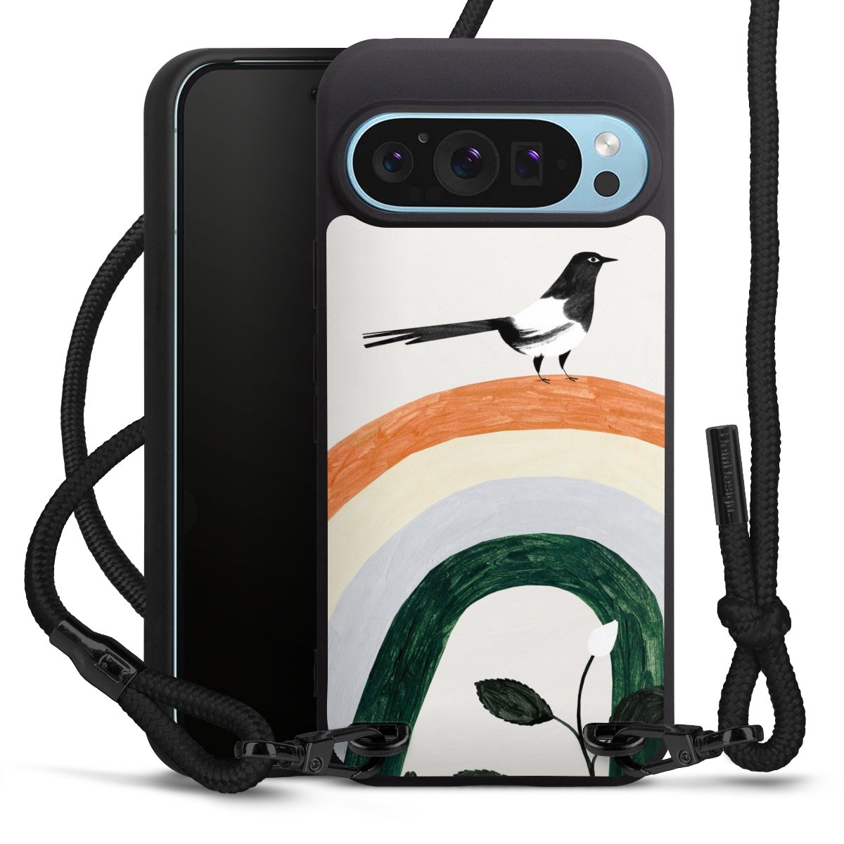 The matt black silicone case is made of flexible TPU (thermoplastic polyurethane) and offers robust protection. The durable, unbreakable material makes the cover flexible and dimensionally stable at the same time. The matte surface makes your design stand out more and is less susceptible to fingerprints and dirt. The stylish trend accessory fits comfortably in the hand and is perfectly complemented by the fabric (polyester) mobile phone strap. The braided fabric strap is approx. 1.70 metres long with a diameter of approx. 0.5 cm. Due to the special knotting technique, the length of the strap can be adjusted by simply pulling it, so that you can adapt it individually to your wishes. The practical case to wear around your neck is available with the fabric strap in black. As a little icing on the cake, we have provided the strap with a chic metal fastener in matt black. The strap is securely fastened to the case with loops made of high-quality genuine leather and press studs. The ends of the fabric strap are covered with metallic end caps and thus protected from fraying.