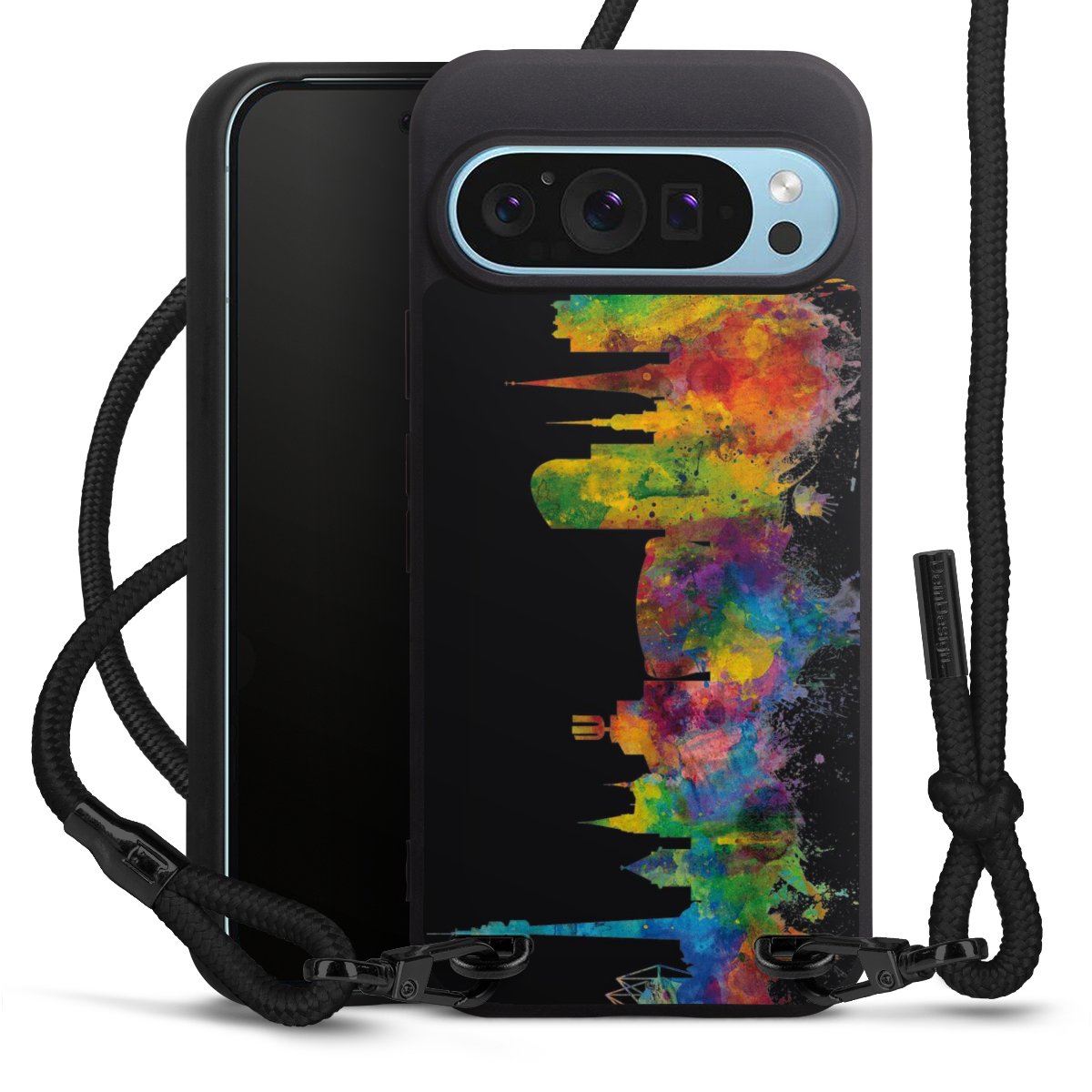 We use the solid direct print process for this phone case, which is why the print area only covers the back and the edge remains unprinted. The case to wear around your neck can be ordered unprinted, fully printed, or partially printed. For your design, either choose one of our exclusive shop motifs or get creative and create your own design, for example with photos and overlays. Design your own personal trend accessory and make an individual statement on the streets!
