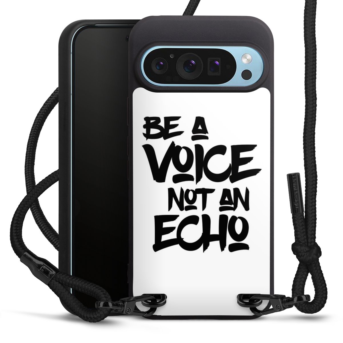 We use the solid direct print process for this phone case, which is why the print area only covers the back and the edge remains unprinted. The case to wear around your neck can be ordered unprinted, fully printed, or partially printed. For your design, either choose one of our exclusive shop motifs or get creative and create your own design, for example with photos and overlays. Design your own personal trend accessory and make an individual statement on the streets!