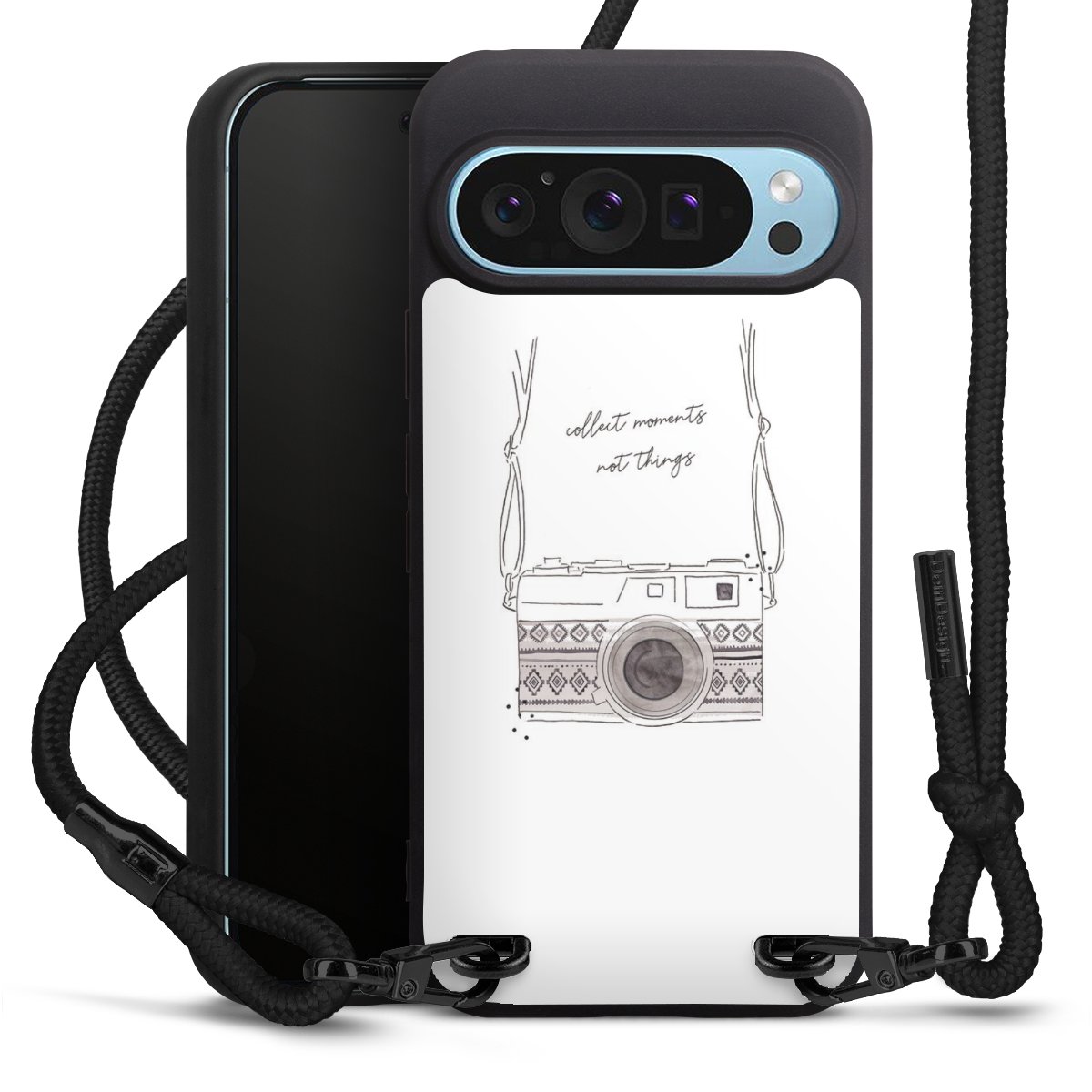 Pure Black: Phone case, fabric strap and metal details in stylish matt black.