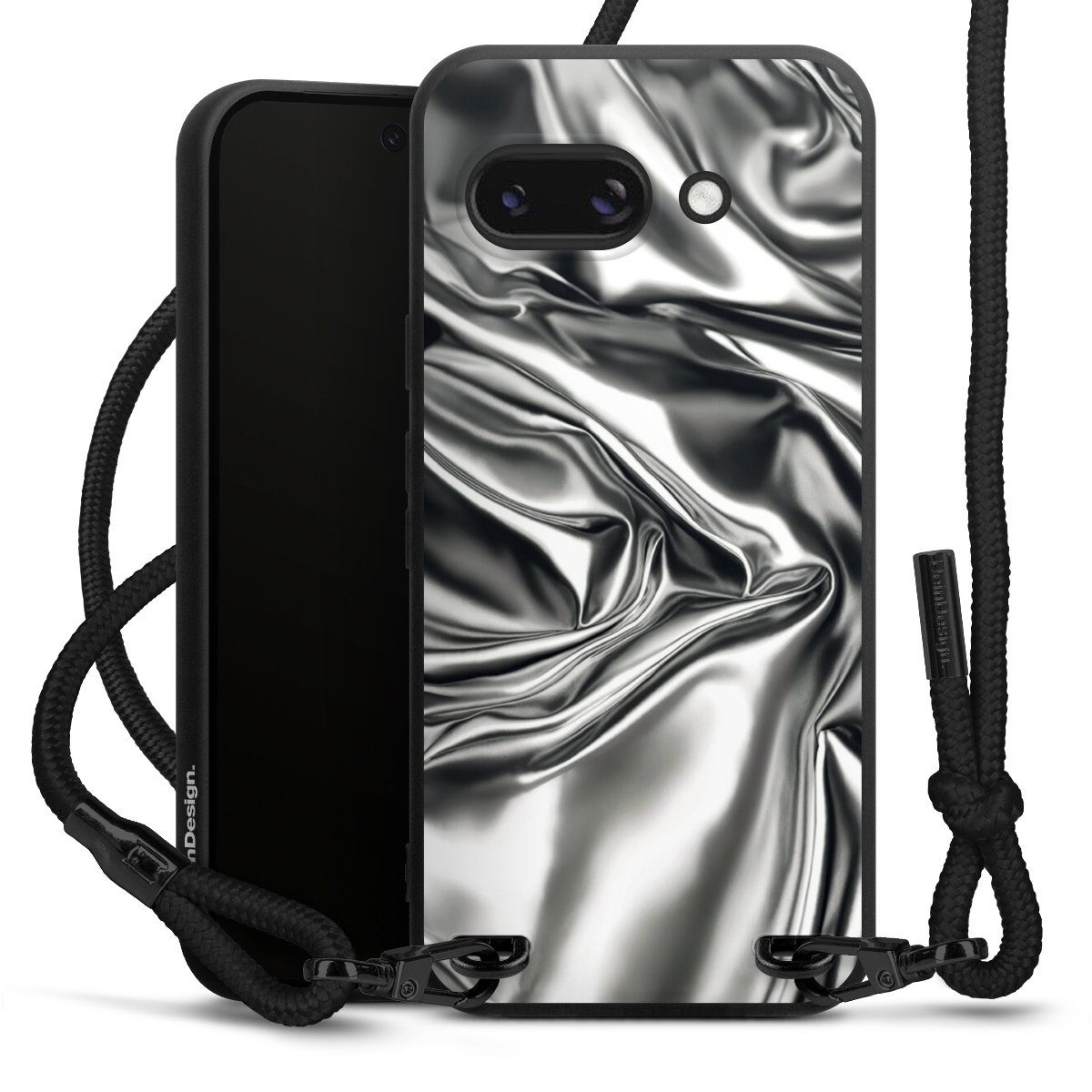 The matt black silicone case is made of flexible TPU (thermoplastic polyurethane) and offers robust protection. The durable, unbreakable material makes the cover flexible and dimensionally stable at the same time. The matte surface makes your design stand out more and is less susceptible to fingerprints and dirt. The stylish trend accessory fits comfortably in the hand and is perfectly complemented by the fabric (polyester) mobile phone strap. The braided fabric strap is approx. 1.70 metres long with a diameter of approx. 0.5 cm. Due to the special knotting technique, the length of the strap can be adjusted by simply pulling it, so that you can adapt it individually to your wishes. The practical case to wear around your neck is available with the fabric strap in black. As a little icing on the cake, we have provided the strap with a chic metal fastener in matt black. The strap is securely fastened to the case with loops made of high-quality genuine leather and press studs. The ends of the fabric strap are covered with metallic end caps and thus protected from fraying.