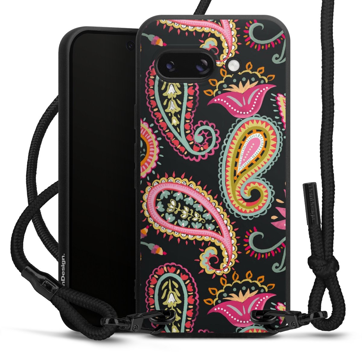 The matt black silicone case is made of flexible TPU (thermoplastic polyurethane) and offers robust protection. The durable, unbreakable material makes the cover flexible and dimensionally stable at the same time. The matte surface makes your design stand out more and is less susceptible to fingerprints and dirt. The stylish trend accessory fits comfortably in the hand and is perfectly complemented by the fabric (polyester) mobile phone strap. The braided fabric strap is approx. 1.70 metres long with a diameter of approx. 0.5 cm. Due to the special knotting technique, the length of the strap can be adjusted by simply pulling it, so that you can adapt it individually to your wishes. The practical case to wear around your neck is available with the fabric strap in black. As a little icing on the cake, we have provided the strap with a chic metal fastener in matt black. The strap is securely fastened to the case with loops made of high-quality genuine leather and press studs. The ends of the fabric strap are covered with metallic end caps and thus protected from fraying.