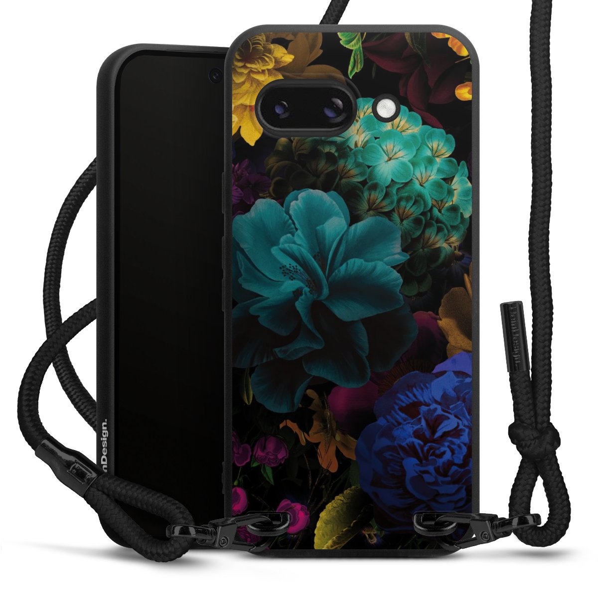 The matt black silicone case is made of flexible TPU (thermoplastic polyurethane) and offers robust protection. The durable, unbreakable material makes the cover flexible and dimensionally stable at the same time. The matte surface makes your design stand out more and is less susceptible to fingerprints and dirt. The stylish trend accessory fits comfortably in the hand and is perfectly complemented by the fabric (polyester) mobile phone strap. The braided fabric strap is approx. 1.70 metres long with a diameter of approx. 0.5 cm. Due to the special knotting technique, the length of the strap can be adjusted by simply pulling it, so that you can adapt it individually to your wishes. The practical case to wear around your neck is available with the fabric strap in black. As a little icing on the cake, we have provided the strap with a chic metal fastener in matt black. The strap is securely fastened to the case with loops made of high-quality genuine leather and press studs. The ends of the fabric strap are covered with metallic end caps and thus protected from fraying.
