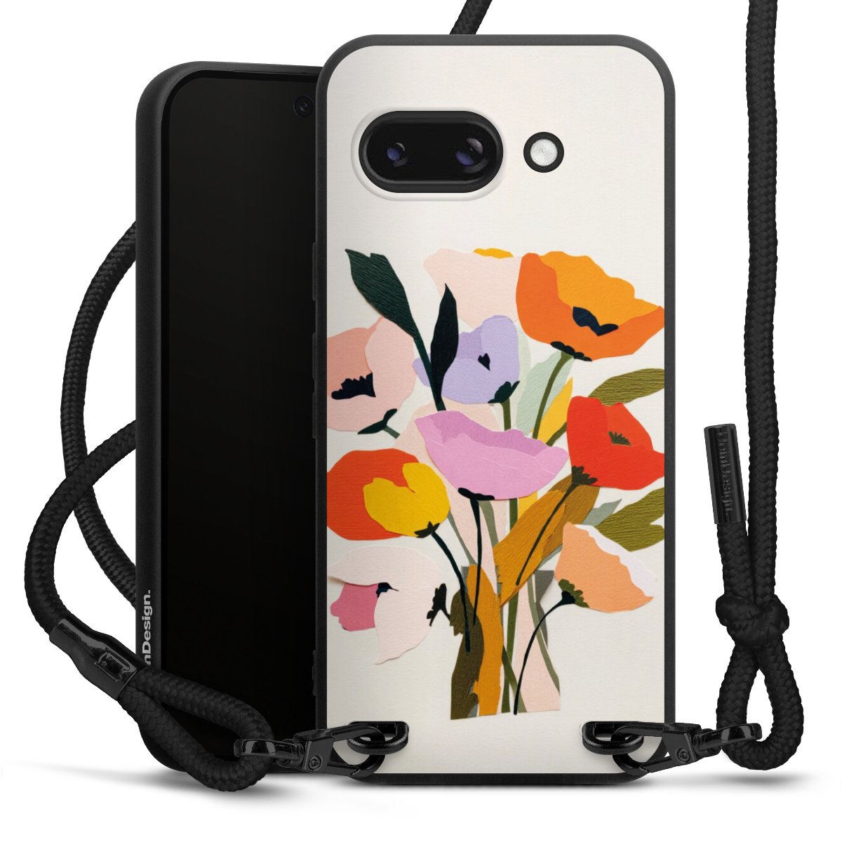 The matt black silicone case is made of flexible TPU (thermoplastic polyurethane) and offers robust protection. The durable, unbreakable material makes the cover flexible and dimensionally stable at the same time. The matte surface makes your design stand out more and is less susceptible to fingerprints and dirt. The stylish trend accessory fits comfortably in the hand and is perfectly complemented by the fabric (polyester) mobile phone strap. The braided fabric strap is approx. 1.70 metres long with a diameter of approx. 0.5 cm. Due to the special knotting technique, the length of the strap can be adjusted by simply pulling it, so that you can adapt it individually to your wishes. The practical case to wear around your neck is available with the fabric strap in black. As a little icing on the cake, we have provided the strap with a chic metal fastener in matt black. The strap is securely fastened to the case with loops made of high-quality genuine leather and press studs. The ends of the fabric strap are covered with metallic end caps and thus protected from fraying.