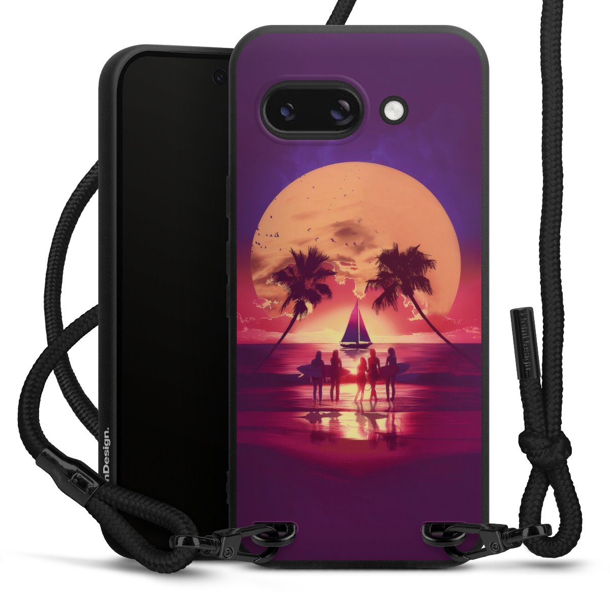 We use the solid direct print process for this phone case, which is why the print area only covers the back and the edge remains unprinted. The case to wear around your neck can be ordered unprinted, fully printed, or partially printed. For your design, either choose one of our exclusive shop motifs or get creative and create your own design, for example with photos and overlays. Design your own personal trend accessory and make an individual statement on the streets!