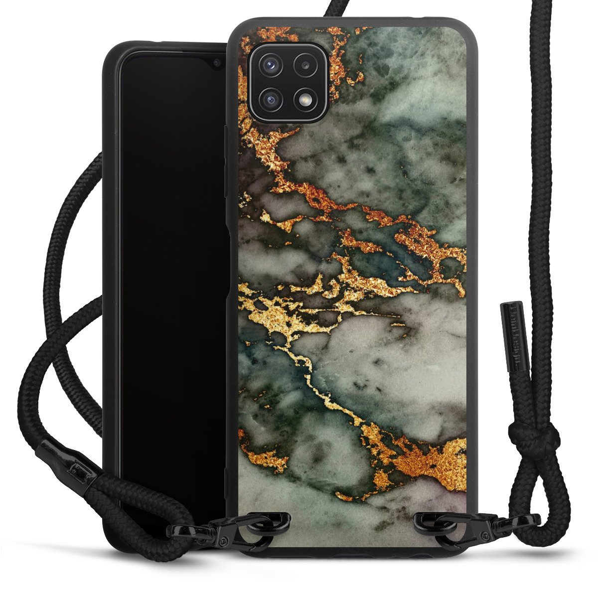 We use the solid direct print process for this phone case, which is why the print area only covers the back and the edge remains unprinted. The case to wear around your neck can be ordered unprinted, fully printed, or partially printed. For your design, either choose one of our exclusive shop motifs or get creative and create your own design, for example with photos and overlays. Design your own personal trend accessory and make an individual statement on the streets!