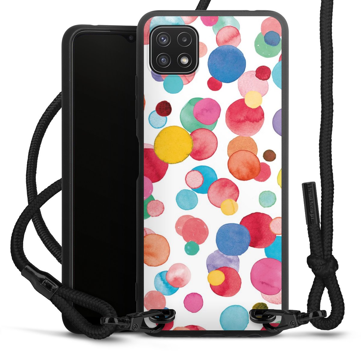 We use the solid direct print process for this phone case, which is why the print area only covers the back and the edge remains unprinted. The case to wear around your neck can be ordered unprinted, fully printed, or partially printed. For your design, either choose one of our exclusive shop motifs or get creative and create your own design, for example with photos and overlays. Design your own personal trend accessory and make an individual statement on the streets!