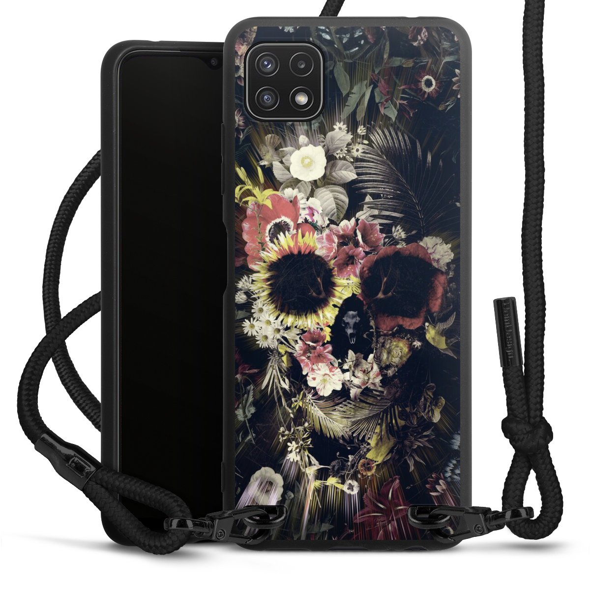 We use the solid direct print process for this phone case, which is why the print area only covers the back and the edge remains unprinted. The case to wear around your neck can be ordered unprinted, fully printed, or partially printed. For your design, either choose one of our exclusive shop motifs or get creative and create your own design, for example with photos and overlays. Design your own personal trend accessory and make an individual statement on the streets!